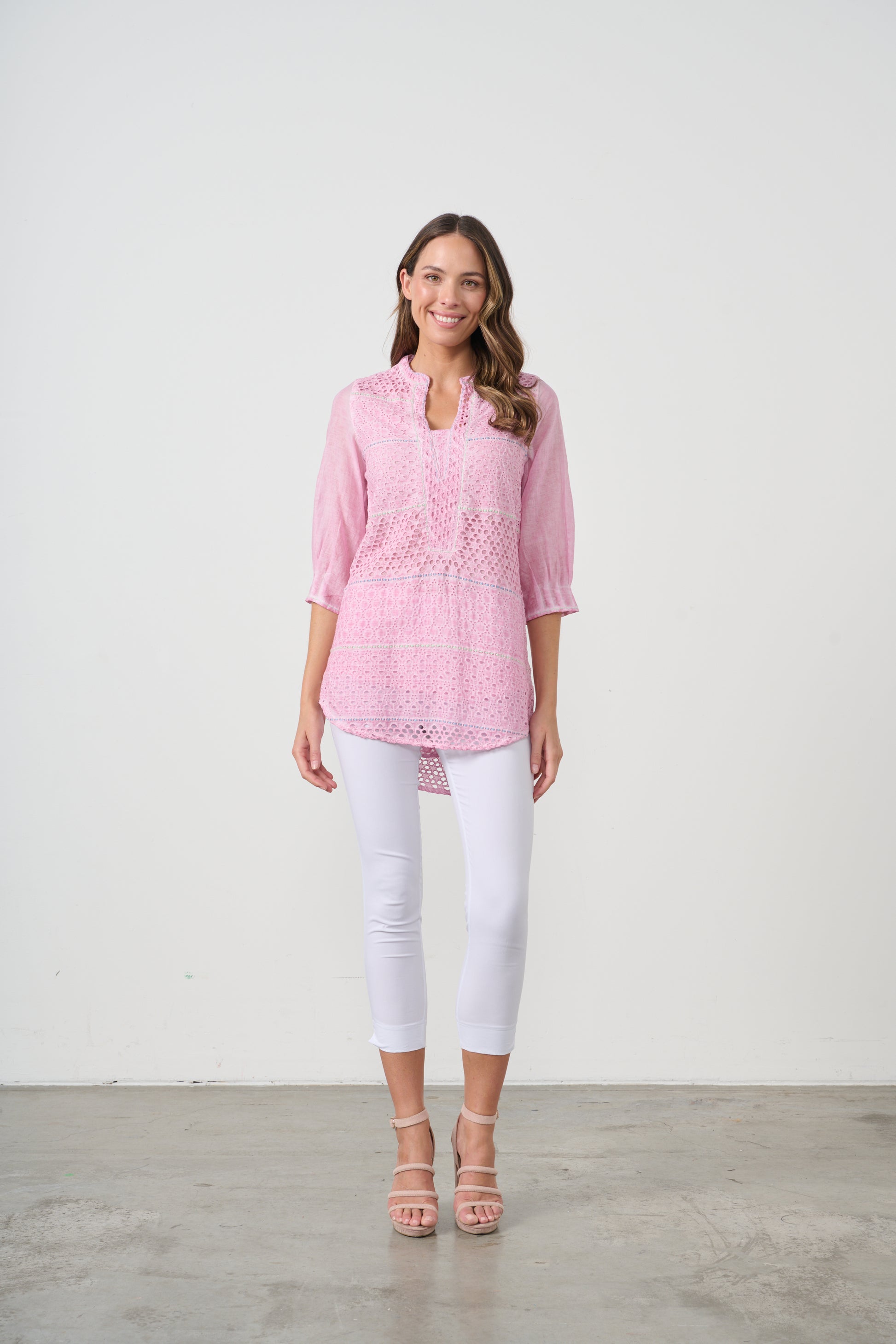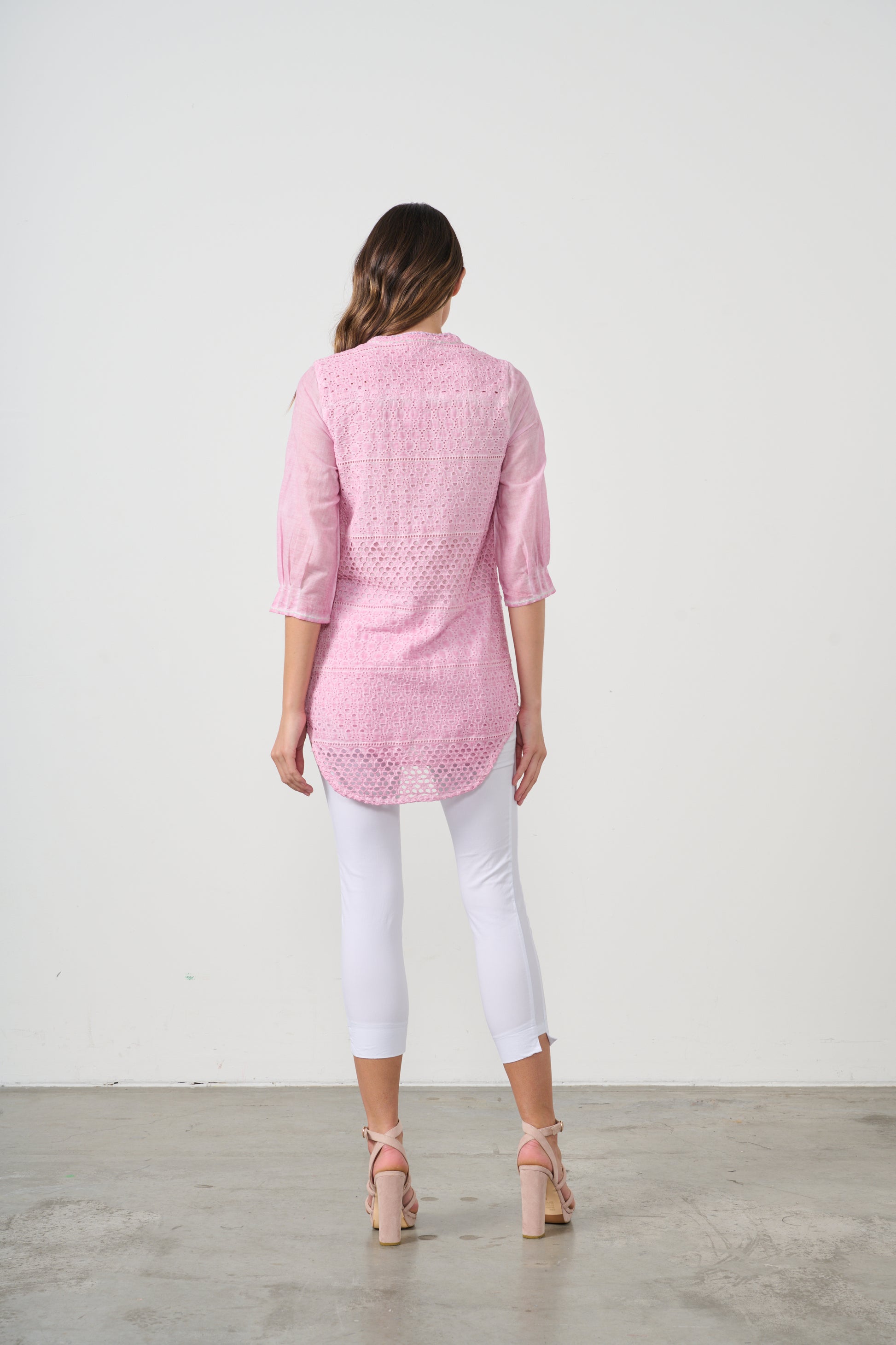 CAJU BRODERIE TUNIC WITH HI-LOW HEM IN PINK