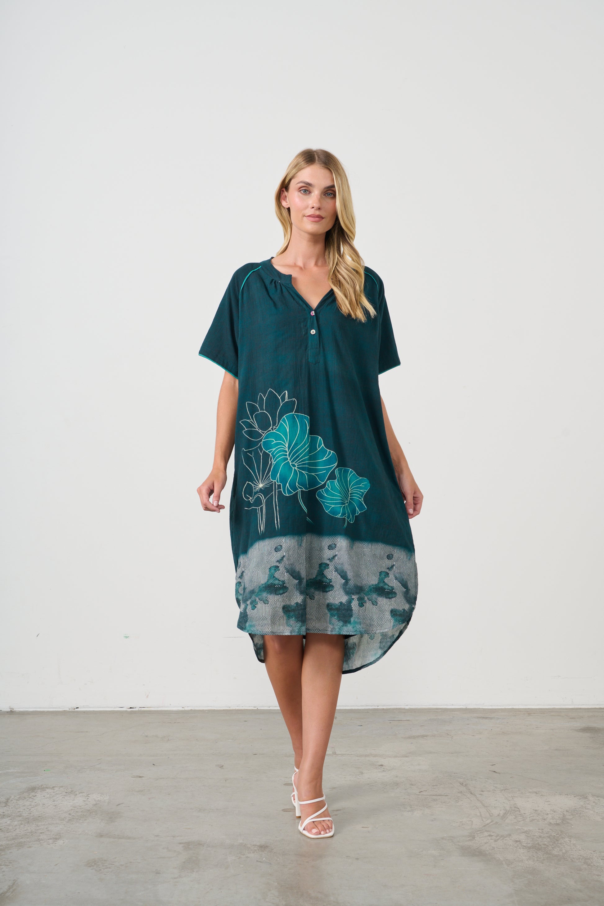 HOLMES & FALLON SCOOP HEM LOTUS PRINT DRESS
