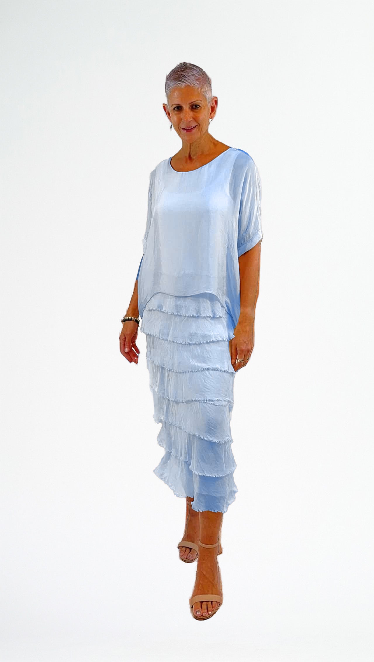 LA STRADA SILK LAYER DRESS IN CELESTE