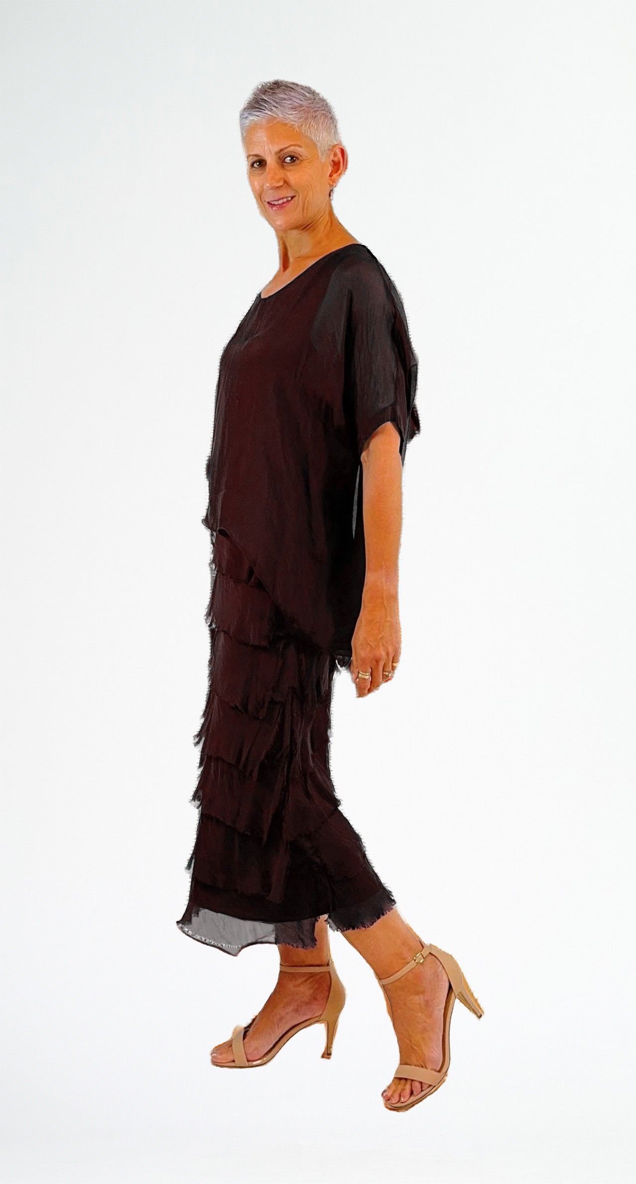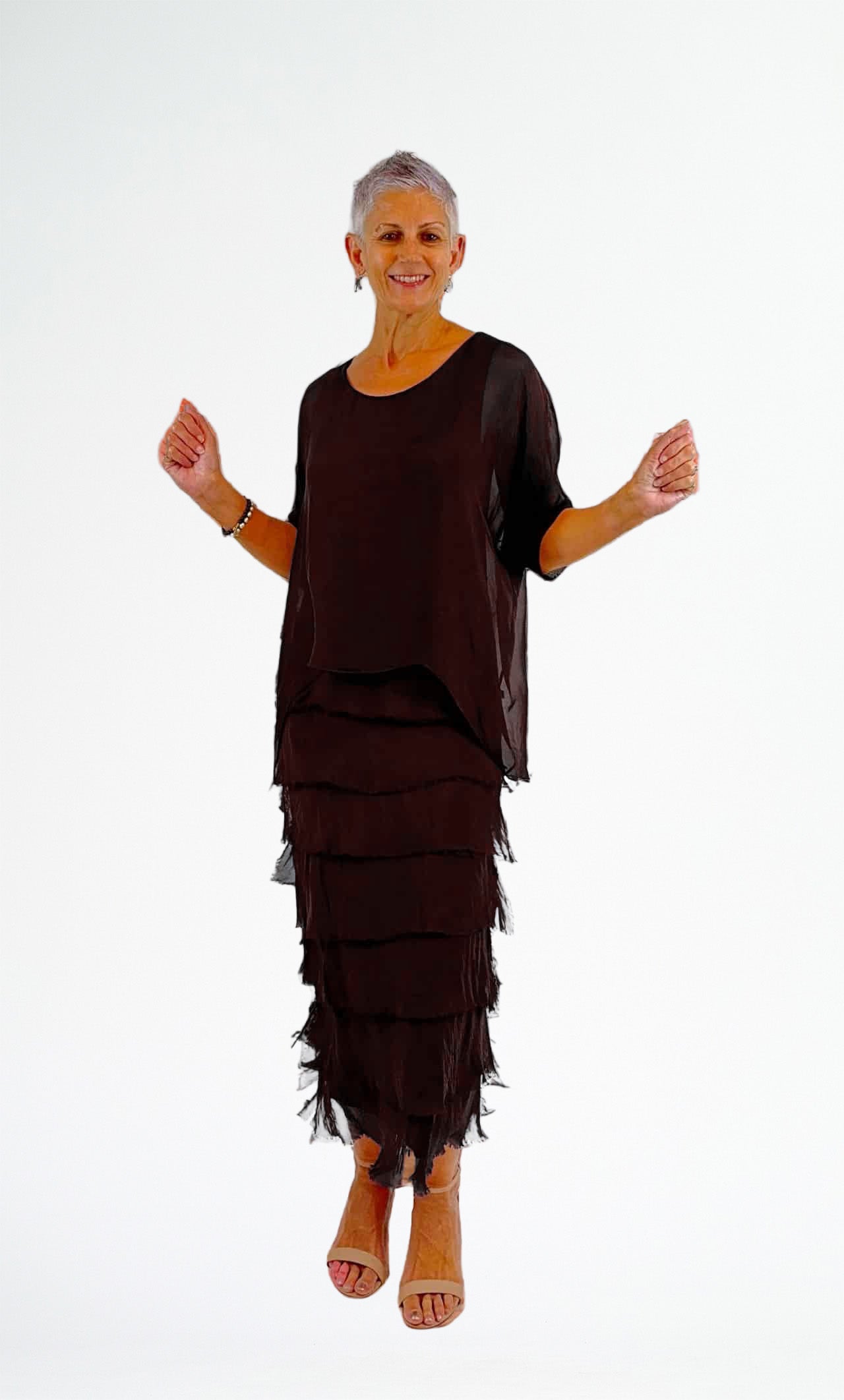 This stunning silk dress from La Strada is the perfect occasion dress. Soft, romantic and looks and feels amazing on. One of their signature styles.
